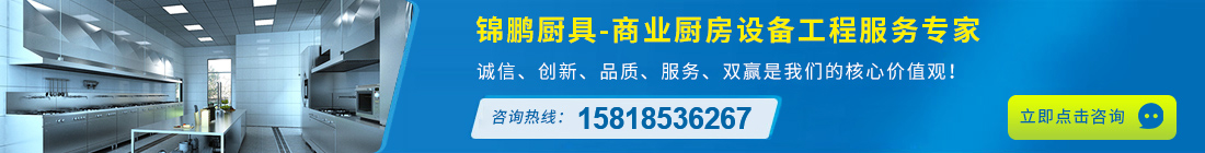 錦鵬廚具是一家專業(yè)從事星級(jí)酒樓、食堂、學(xué)校、餐廳、工廠、機(jī)關(guān)、醫(yī)院等商用中央廚房設(shè)備工程設(shè)計(jì)售后維修保養(yǎng)為一體的現(xiàn)代化企業(yè),廚具設(shè)備廠家。承接不銹鋼廚房廚具、酒店廚房設(shè)備工程、不銹鋼廚房設(shè)備工程、商用廚房工程設(shè)計(jì)及制冷制熱系統(tǒng)工程。業(yè)務(wù)范圍覆蓋廣州、深圳、東莞、佛山、惠州等地,公司依據(jù)客戶要求和現(xiàn)場實(shí)際情況精心設(shè)計(jì),合理安排,創(chuàng)造節(jié)能環(huán)保優(yōu)質(zhì)產(chǎn)品和熱情服務(wù)。